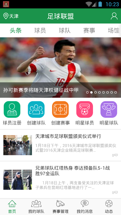 球员互动,通过球员发布动态和同城及全国球员形成互动 展示球员风采