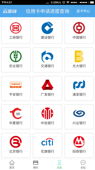 5.各大银行信用卡申请进度在线查询;