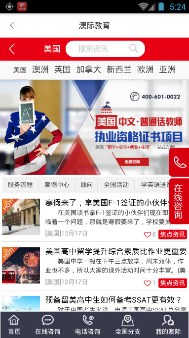 1.App首页全面改版,留学管家系统完整展现。