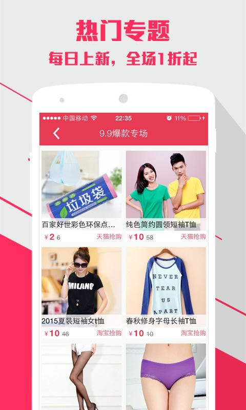 给力价天天双十一,每天万余款9.9元包邮商品更新推荐!