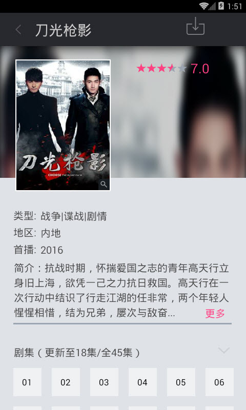 刀光枪影电视剧app是一款电视剧《刀光枪影》的主题安卓app,你可以通过这款app收看到最新最全的《刀光枪影》剧集,还可以和其他喜欢这部电视局的人一起以留言的方式来讨论它。欢迎喜欢这部电视剧的影迷朋友们前来下载安卓这款app。