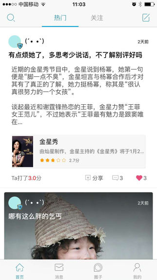 一款基于影视、明星、旅游的兴趣话题的社交应用
