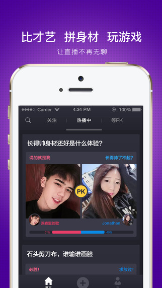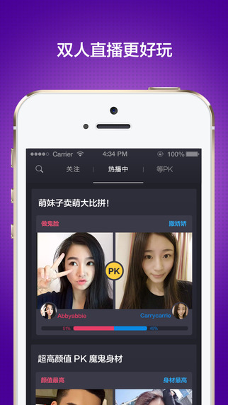 洋葱TV特别引入双人直播的PK模式:谁的得赞数高,谁就能赢得本场比赛的胜利,而获胜的一方将获得双方在本场双人直播的所有收益。