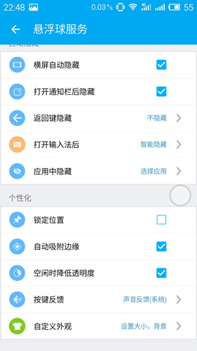 *免root实现返回键功能;弹出输入法时【智能隐藏】与【智能移动】;支持【全屏下拉悬停】(需要flyme4.1以上系统)。