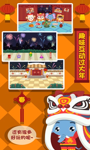 儿童过春节游戏app是一款教育软件,这款APP通过游戏化的场景让广大小朋友们感受新年的氛围,提前教会他们在新年中应该注意的一些礼仪与传统习俗,如贴对联、放鞭炮等,当然现在城市普遍禁鞭,所以有些事情只能在游戏中给孩子演示下咯。