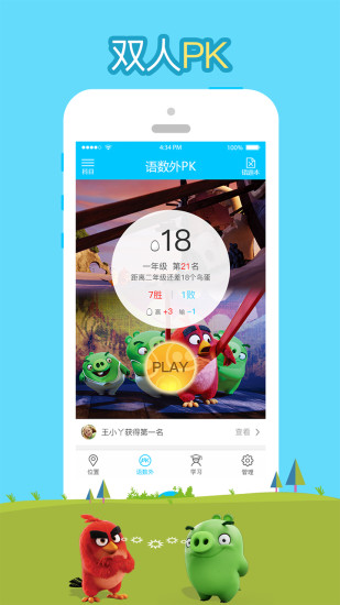 2、小蛮学习通过语数外pk功能,在提升孩子学习兴趣的同时,还能让家长和孩子一起学习,增强家长和孩子之间的互动性;