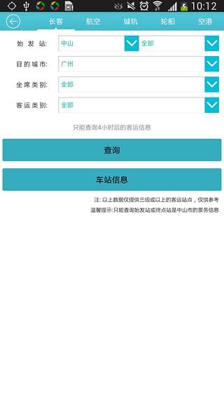 5.城际出行提供汽车长途客运、航空、广珠城轨、轮船运输、空港快线等信息查询;