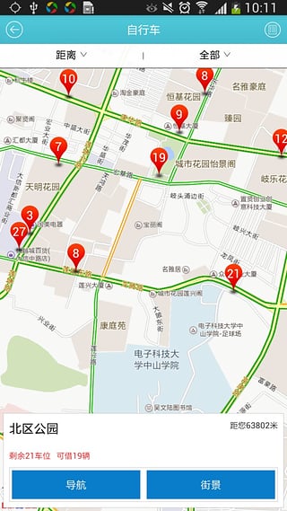 3.公共自行车提供全市自行车租赁点和租赁记录查询;