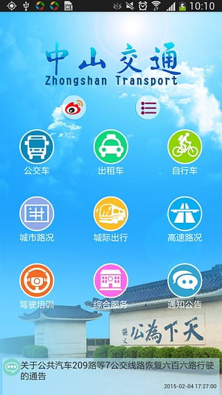 “中山交通”手机服务应用是由中山市交通运输局向市民推出的交通运输信息服务项目之一,