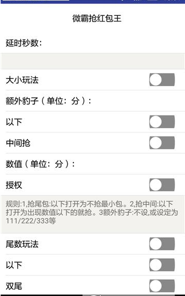 3,抢中间包功能: 可设置低于或者高于安全值抢(金额大小)