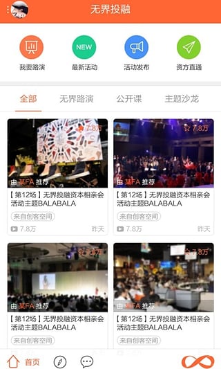无界投融app是一款金融投资理财平台,在这里有着各类创业项目,更有各方投资人机构,这个世界每一天都有新的故事发生,也有新的梦想成就,为广大投资者与创业者打造一款沟通的服务平台,实现资本的高效对接。