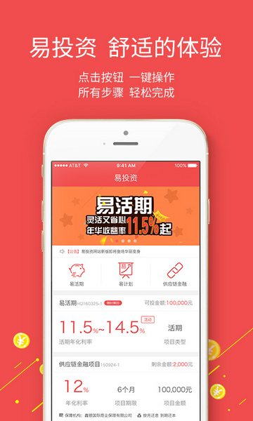 易投资,聚焦供应链金融模式的互联网投融资平台。通过互联网线上模式,我们可以为你提供年化收益10%左右的优质投资产品+适合你的投资理财规划方案。