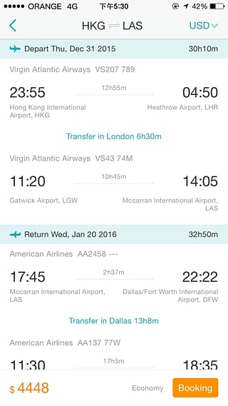 搜索、预订一站式操作,给您最优的体验。悄悄告诉你~我们的往返特价包,比单独预定两程节省近20%哦!