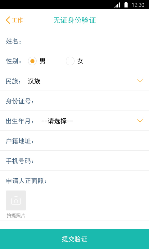 一键登记——直接录入客户的身份信息和现场照片,即可等待验证;