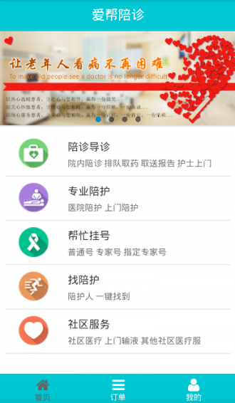爱帮陪诊接单app是一款健康医疗应用,爱帮陪诊接单app专为陪诊人员设计,方便用户可以通过软件快速接单,为患者提供专业高效的陪诊服务,为患者解决各种看诊问题。