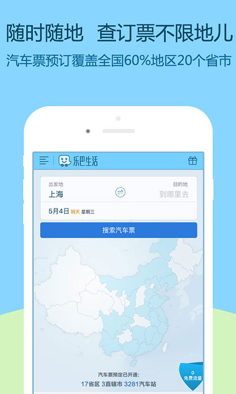【乐巴生活出行服务】汽车票、火车票、飞机票,应有尽有;订旅游、订酒店,简单查,轻松订。