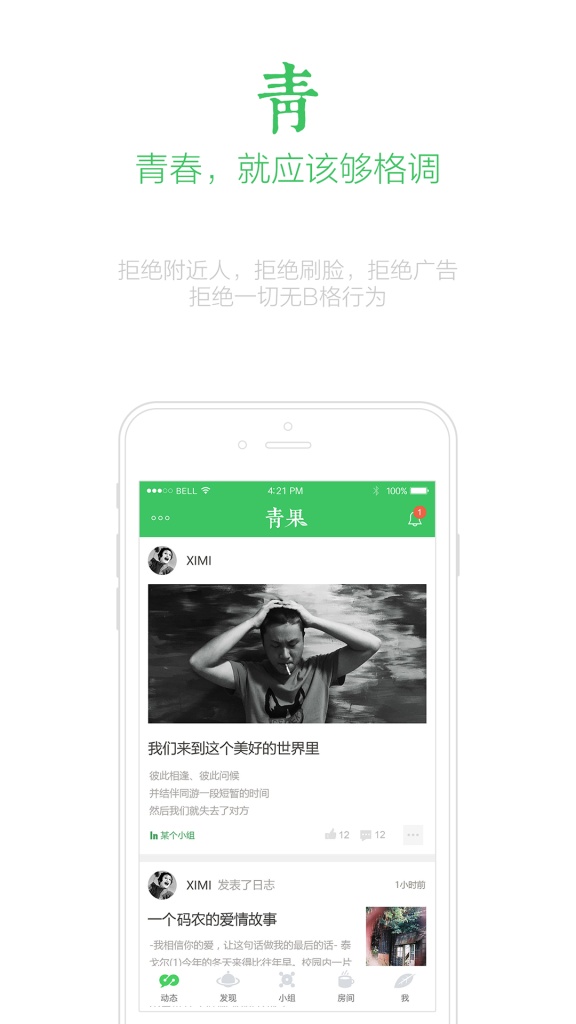 靑 - 青春,就应该够格调--拒绝附近人,拒绝刷脸,拒绝广告,拒绝一切无B格行为