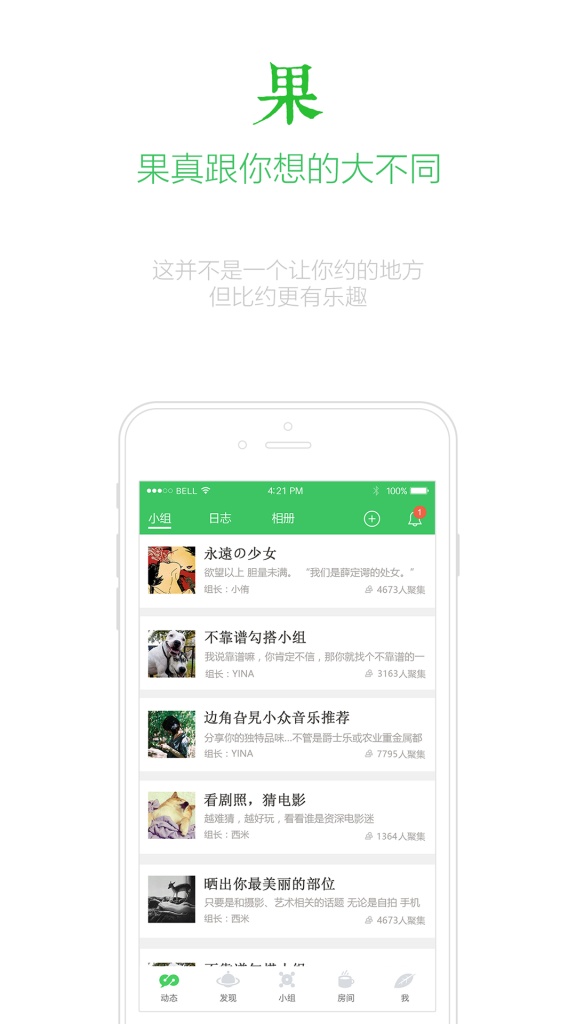青果app是一个专为伪文艺青年量身定做的小众APP,是一个伪文艺独立社区兴趣交友小组。在青果app,用户可以通过相册,日志,个人动态与其他人分享生活的点滴,没有显示地理位置,没有关注,没有私信,让用户尽情交流,欢迎下载体验。