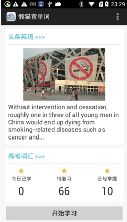 懒猫背单词(英语学习)app,给你带来全新的记单词方法,看新闻记单词,把记单词这个枯燥的学习过程融入到英语生活当中去,记单词更快。