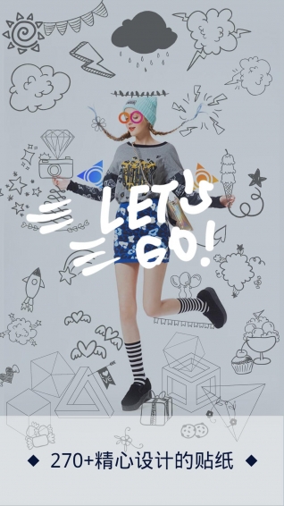 270个精心设计的免费贴纸,包括艺术字、基础线条、个性图形、心形、时尚等。