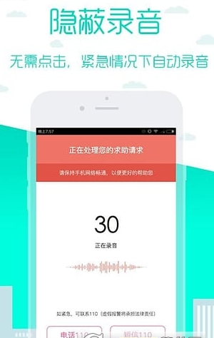 [隐秘录音]:危急情况下,自动激活手机录音功能。录下您的现场声音,便于警方了解您的状况,迅速出警,快速找到你。