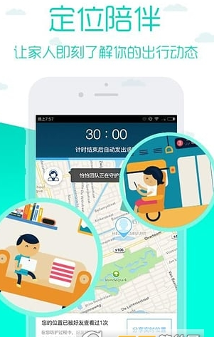 [位置共享]:一键微信、短信或QQ发送个人的实时位置给家人,安全又安心。完全自主决定何时分享何时结束,安全的同时有效保证个人隐私。