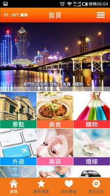 澳指南 - No.1 澳门资讯指南APP,澳门最大分类资讯平台,为澳门旅客及居民提供最全面的旅游丶 商业丶生活资讯及优惠,吃喝玩乐及衣食住行一APP打尽。No.1澳門資料指南APP,提供全澳超過一百間商戶的消費優惠,只要消費時出示APP內的電子優惠券,即可享用優惠,真正一APP在手,優惠隨時有