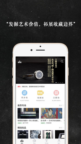 同步拍卖/春拍秋拍不需赶场子,一边品咖啡一边用大咖拍卖APP淘嘉德、保利、匡时拍卖公司拍品,点击参拍-支付保证金,轻松与线下藏家同步竞拍,让您享受全民收藏的“王者荣耀”;
