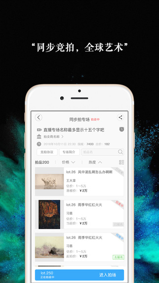 大咖拍卖app是一款以拍卖为主的创新型艺术品交易平台,具有同步竞价、视频直播、报名参拍、收藏、红包赞助、钱包理财、支付、竞拍宝等功能,为全球藏家、艺术家、拍卖行、画廊、经纪人等提供随时随地竞拍服务,让淘宝和捡漏变得有趣好玩!