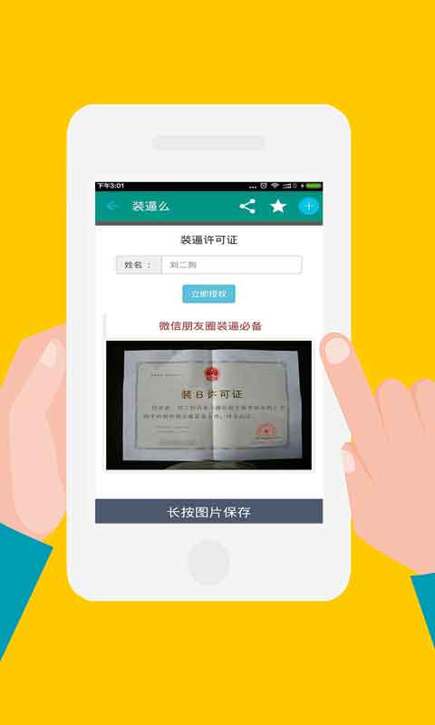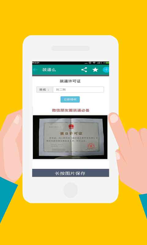 新增装B资讯,装B的同时不再无聊!一键生成带你名字的结婚证,豪车证,明星举牌,摩天楼表白等等。带你装逼带你飞,让你瞬间成为朋友圈风云人物。海量素材每天更新,让你永远站在潮流的风口浪尖。支付宝红包, 刷爆信用卡,狂晒余额宝,微信钱包,狂晒余额宝,支付宝红包详情,装逼神器以后会加入微信任意人对话,红人举牌.