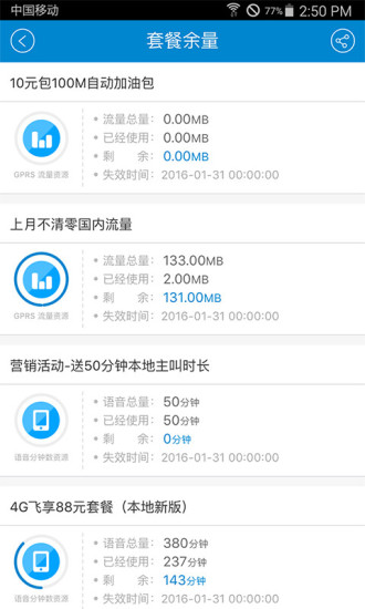 2、 优化套餐余量显示;