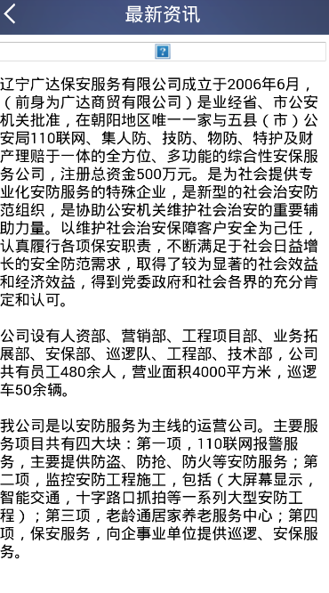 随着公司规模的扩大、技术水平不断提高、业务范围日益扩展、工程业绩稳步提升,公司所承接的业务在朝阳市及周边城市防盗报警系统集成施工中一枝独秀,赢得了社会良好的声誉,并且已经深入人心,得到政府领导以及广大市民的充分肯定。
