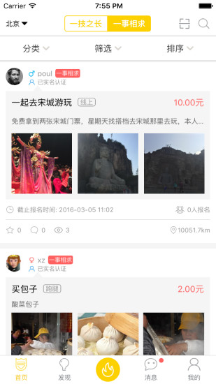 1、【一事相求】 不管你有几事相求,想学轮滑、想吃零食、占座陪读,哪怕只是想找人聊天、一起游戏、压压马路……只要大胆说出来,换个方式轻社交,解决需求邂逅校园那个投缘的TA ,求帮互助,暖心相遇;