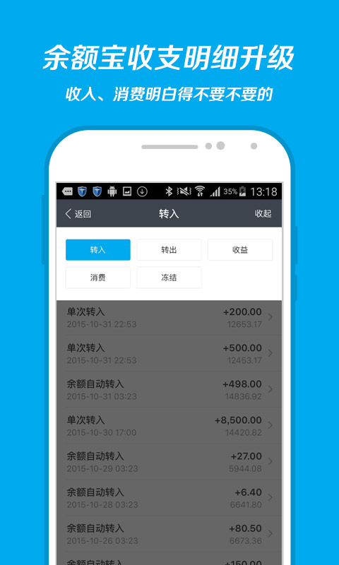 4、余额宝收支明细升级,收入、消费明白得不要不要的;