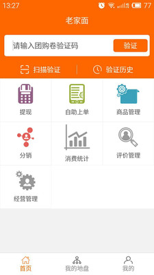 【首页】全新界面形式,新增商品管理和自主上单功能,提现入口移至首页,优化了扫码验证功能,管理店铺更加方便;