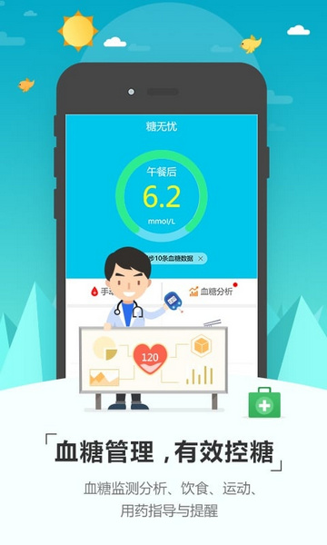 1.全面血糖管理,有效控糖血糖监测分析和预警;运动饮食建议;用药指导与提醒,助您轻松管理糖尿病