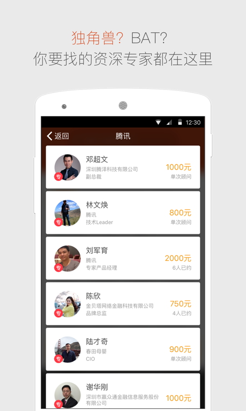 专头app是一家面向企业家的“微顾问”平台,致力于连接企业家和专业人才,解决企业经营和创业过程中的各种问题。