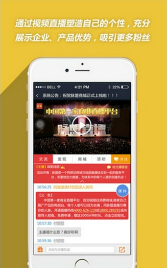脉盟商城直播app下载:一款把商城与直播结合在一起的社交软件。使用脉盟直播app,可以随时发起直播分享不错的商品,吸引消费者,赚取佣金,欢迎前来下载体验!