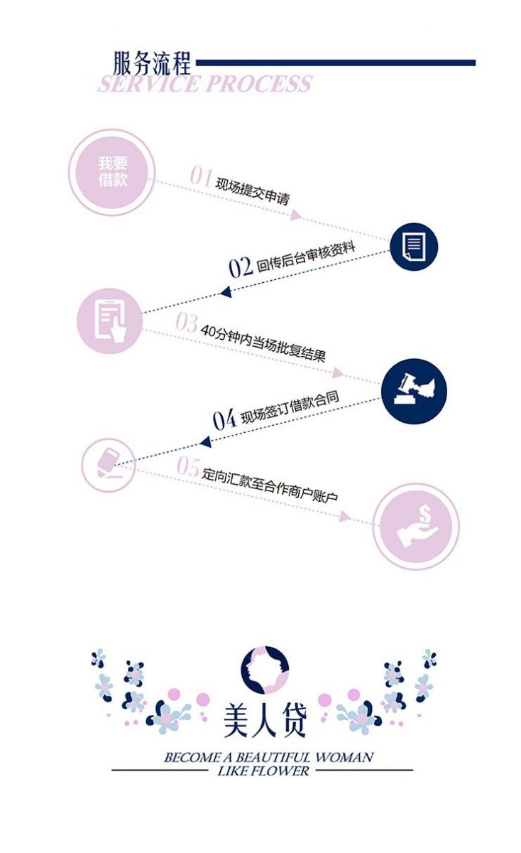 2.“美人贷”消费分期服务集合了利率优惠、手续简便、审批极快、申请极易、首付极低等优势为一体,该服务重要的特点是“零首付”和“一站式服务”。