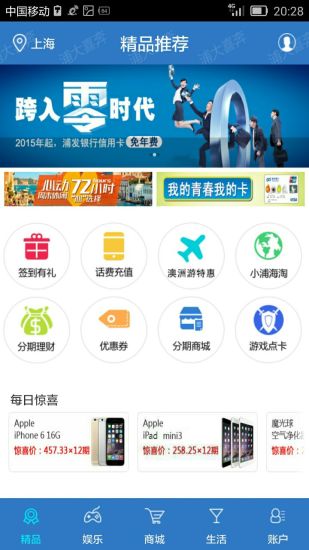 浦大喜奔,是一个生活金融服务应用。该平台精心开设了精品推荐、小浦娱乐、小浦商城、小浦生活、小浦账户等特色板块,将游戏、理财、生活服务、特色活动和移动商城合为一体,为客户提供全方位的金融消费生态圈的特色服务平台。