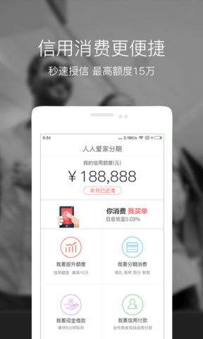 覆盖婚宴、家装、旅行、教育等消费领域,为初建家庭人群分担生活压力、提高生活品质。相比银行贷款的繁杂手续,爱家分期无需抵押担保。用户凭借个人信用,即可享受最低月息0.75%、最高额度为30万的信用分期借款。
