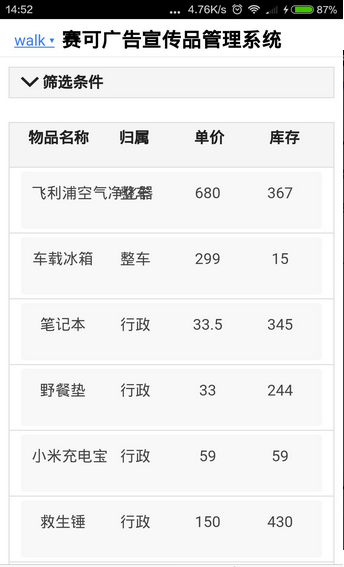 1、赛可广告宣传品台账管理系统,目前仅限公司内网使用;
