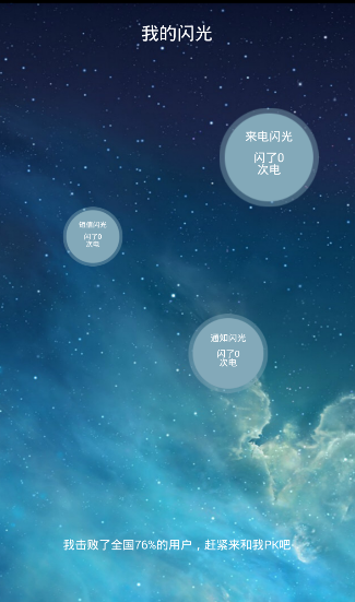 来电闪光汉化版app,软件已经全部汉化,使用起来更加方便!支持来电,短信通知汉化,让你的电话更时尚,还能联网查看自己的闪光数据和其他用户对比。
