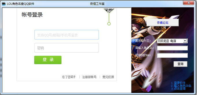 一款能够通过英雄联盟玩家游戏名字查找它的QQ号码的软件