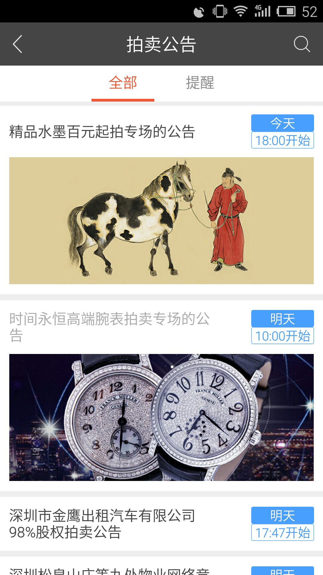 【信息与拍卖】整合各地区的拍卖公告与拍卖活动,客户能便捷地获取完整、及时的拍卖信息,无一遗漏,缩短客户获取拍卖信息的链条。智能化推送订阅信息,贴心的提醒服务。