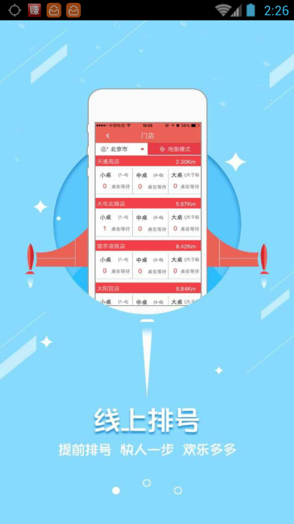 3、“繁忙时间段”或“预留桌位已满”跳出推荐模式:“附近门店”和“网络排号”以及“选择外送”。