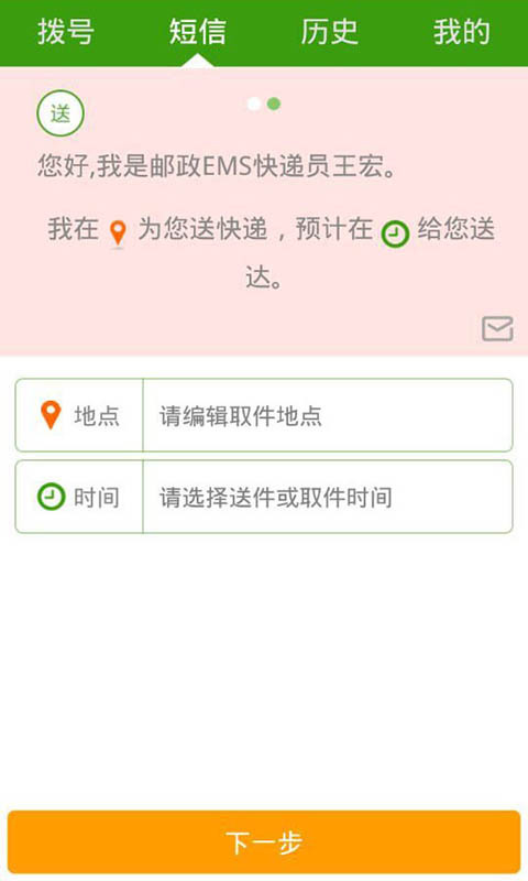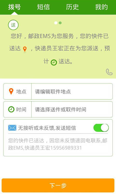 电话群呼,短信群发,为快递员打造的通知神器。主要解决派件时通知烦、送件难、话费高的问题,一次呼叫完成所有通知,帮助快递员准确高效的完成派件任务。