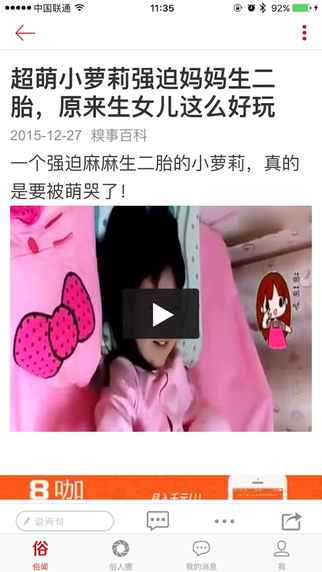 俗闻app是一款娱乐搞笑新闻阅读客户端应用,俗闻只做最有趣的新闻,新闻的内容很多,有搞笑视频、八卦消息,千奇百怪,脱离古板的新闻,还可以分享有趣的内容到朋友圈。