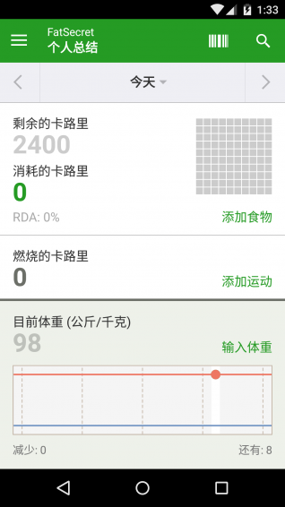 瘦身管家app,一款美眉最爱的瘦身软件,可以随时测量食物的卡路里和营养成分。瘦身管家app记载的每段时间你的重量,程序设计一卡路里的你的预算。如果你在你的预算以内停留和忠实地记载你的膳食,你将在你的目标日期上接触到你的被向往的秤砣。它在你的真新陈代谢的比率上建立你的预算。在整个日,记录你所有的膳食和锻炼,和这立即显示对你的33种重要的养料的平衡的效果。