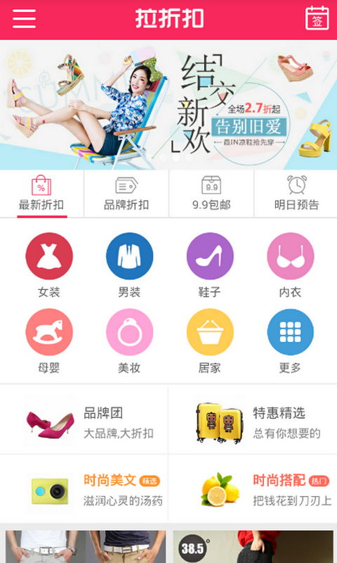 拉折扣app汇聚全网最优质折扣商品,每日精选千款超值折扣商品9.9元起全场包邮1折特卖,每天10点限时秒杀!拉折扣让你购便宜!
